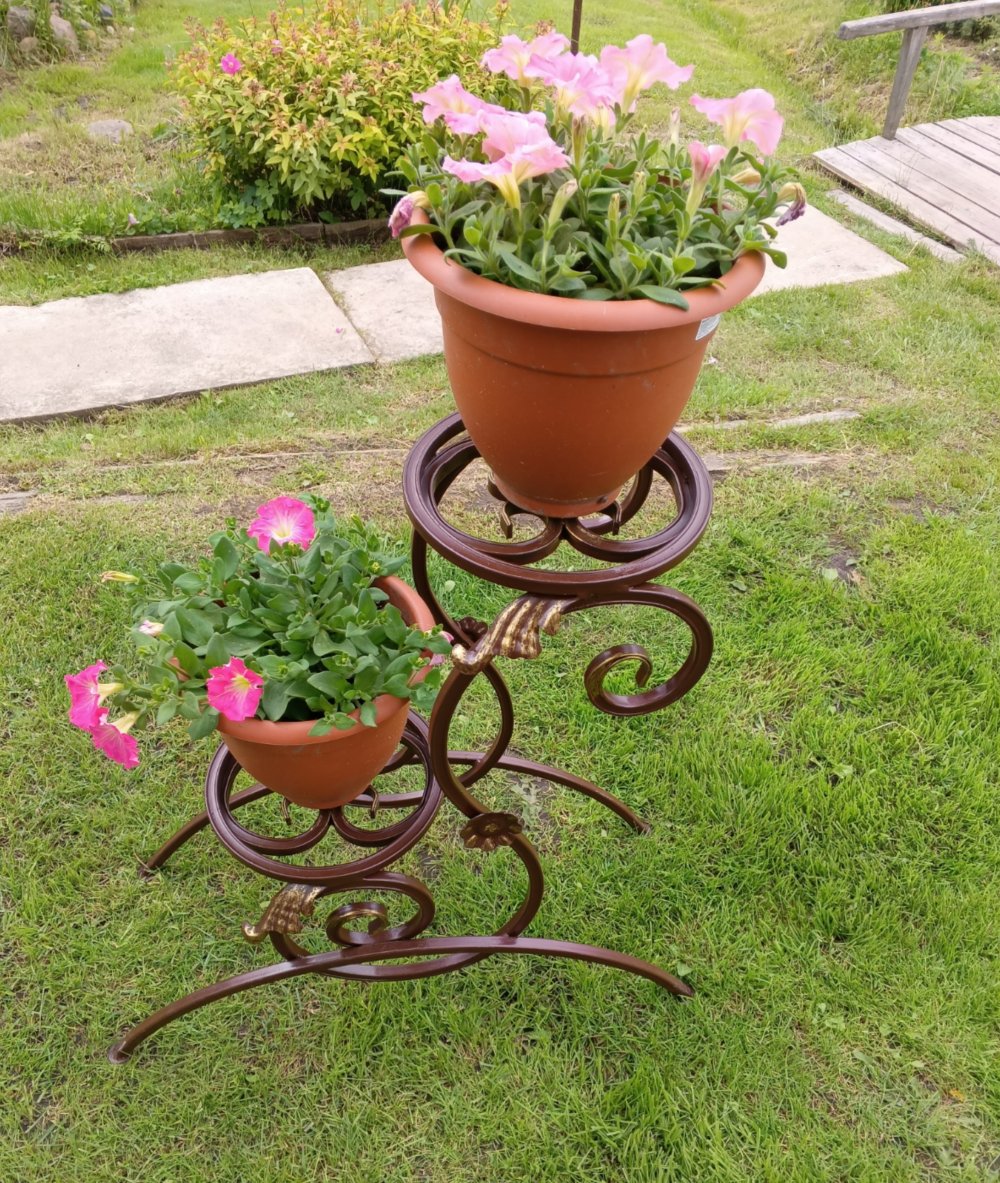 Подставка для цветов "КАРЕТА" окрас молотковой краской длина 94 высота 60 ширина 29 ширина гнезда 23. ручная работа, осталось 1шт. Возможно изготовление на заказ.