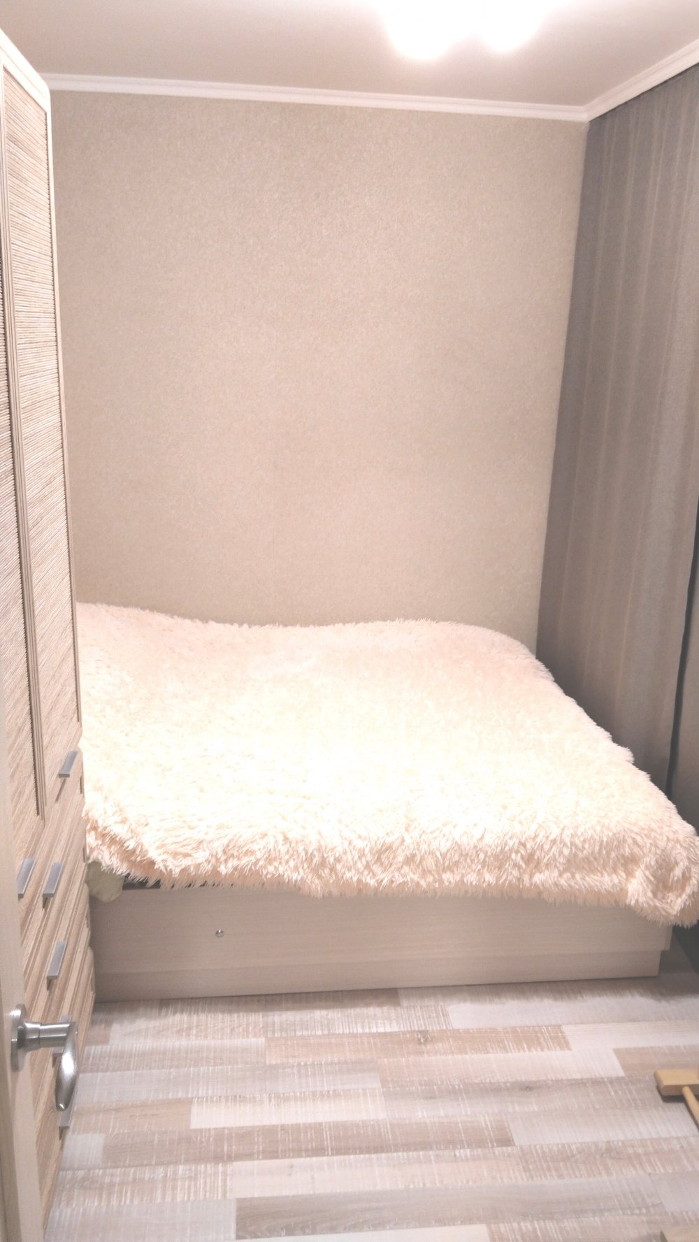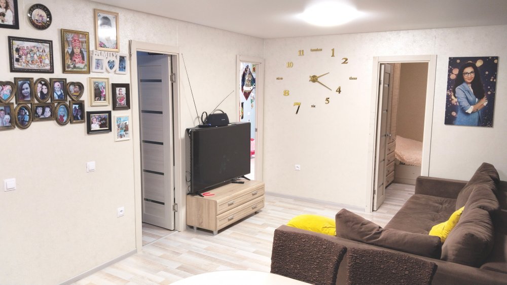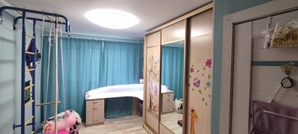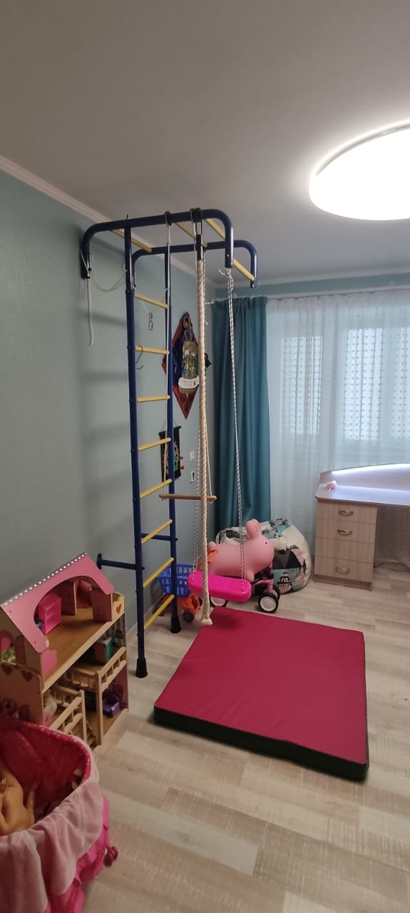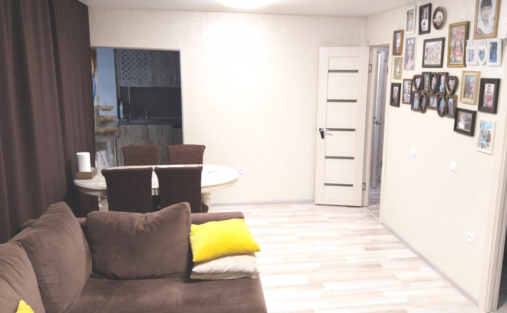 B квартире выполнен качественный ремонт, всё сделано под себя и для комфортного проживания. Пол покрыт ламинатом, в детской комнате и в ванной теплый электрический пол. На стенах виниловые обои в спокойных тонах, матовые натяжные потолки. Качественные межкомнатные двери. Санузел раздельный, большая угловая ванная. Вся сантехника и подводка к батареям заменена. Батарей чугунные, тщательно промытые, с дополнительными секциями до максимального количества, в результате чего квартира очень теплая. Также в квартире имеется балкон, застеклён, утеплен и обшит светлыми панелями.